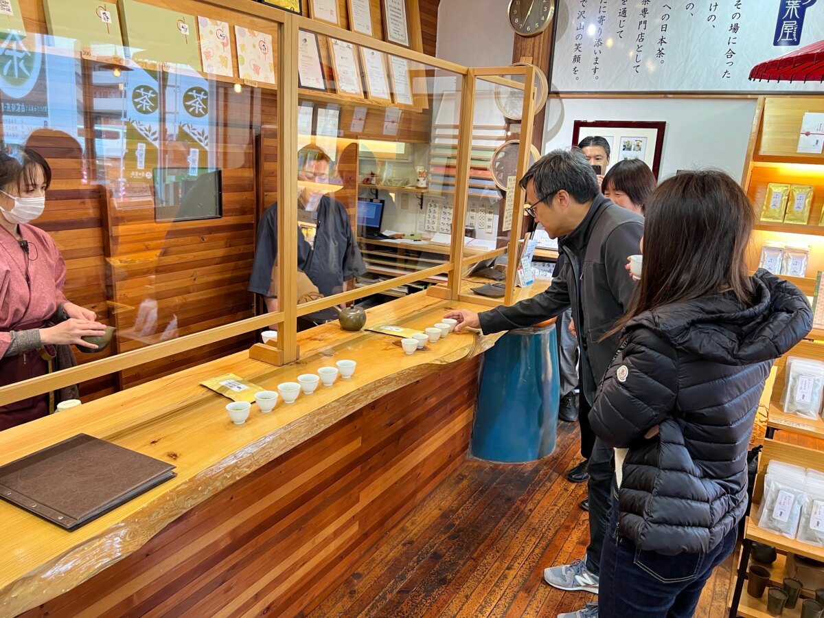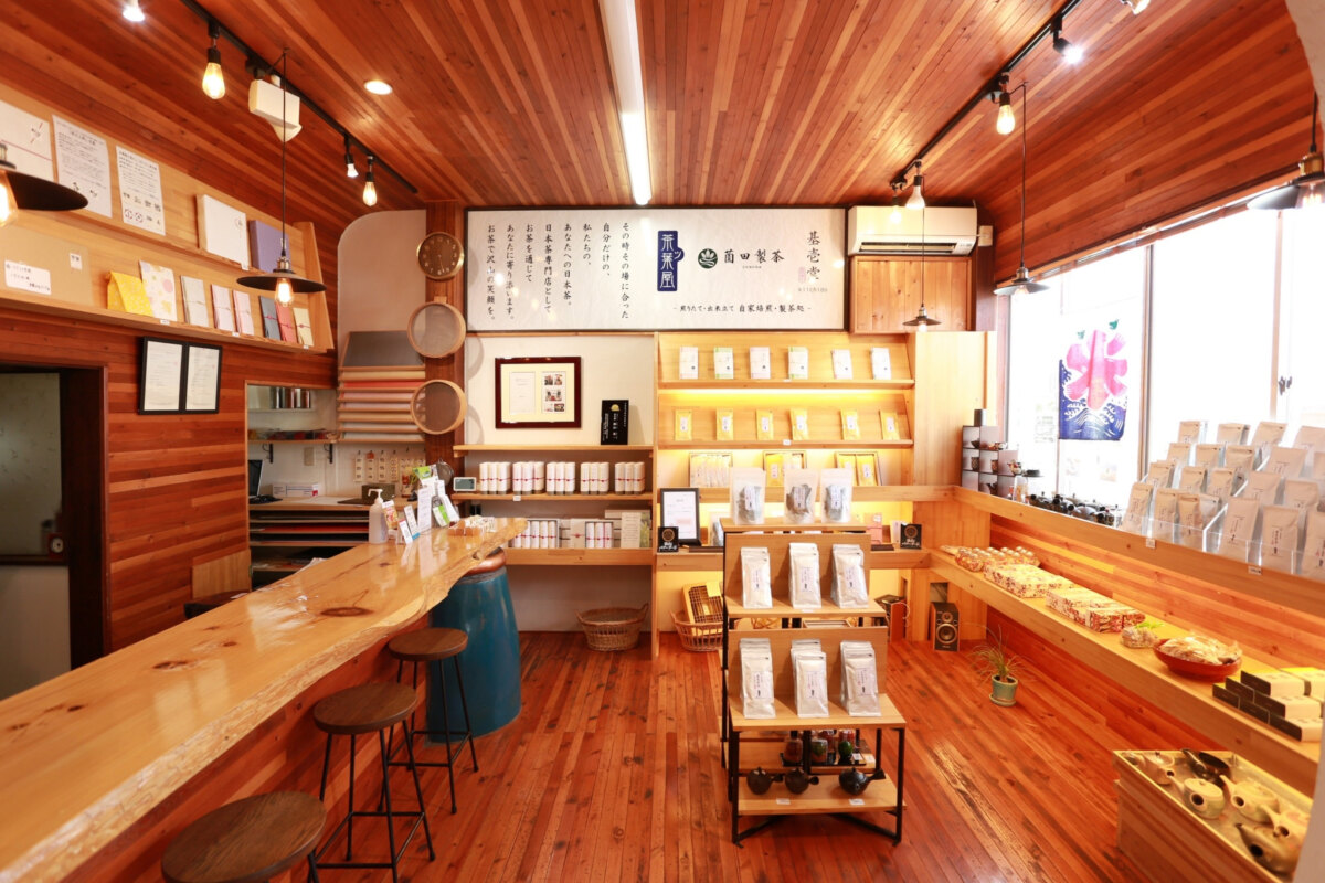 最初のランチは、日本茶を生かした料理やスイーツが味わえる隠れ家のような和風カフェ。2021年にオープンし、1階でおもてなしのお茶を一杯味わい注文を済ませた後、隠れ家のような茶工場2階で日本茶を生かした料理とデザートが楽しめます。日本茶専門店ならではの茶パフェや夏季限定かき氷も人気です。1階では自宅用や贈答用のお茶を取り揃えているのも魅力です。