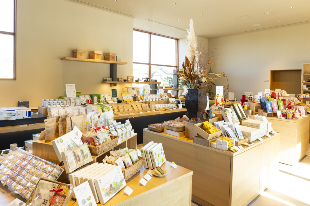 ショップ&カフェ茶畑にぽっかりと浮かぶカフェ「茶の庭」では、自然の四季をゆったりと感じていただき、美味しいお茶の新たな体験、発見ができる。見た目はもちろん、香りや音など五感がリラックスする癒しのカフェです。さらに本物のお茶はもちろん、遊び心に溢れた様々なものをお楽しみいただけるショップ。お茶も含め、トラディショナルなものからモダンなものまで、あなたのお気に入りがきっと見つかる。お茶のある生活を彩る雑貨も勢揃いギフトにも好適。